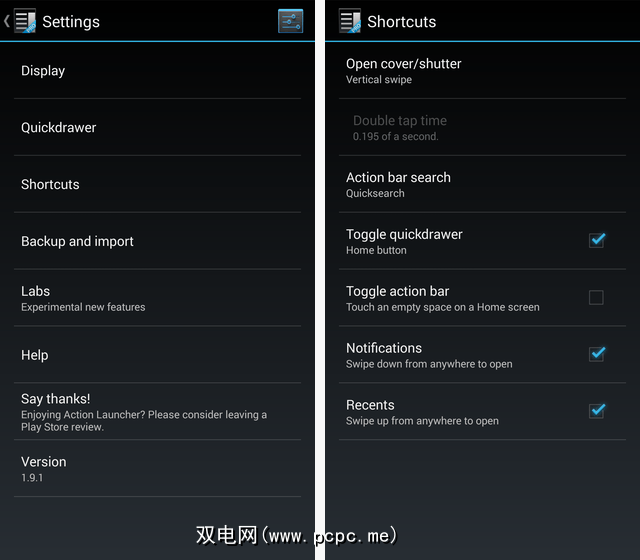 例如,您可以选择触发外盖和百叶窗的手势。该菜单主要用作将来进行自定义的启动点:我们希望Action Launcher Pro的将来版本将提供进一步的自定义,并且菜单的合理结构应使其易于发现和使用。