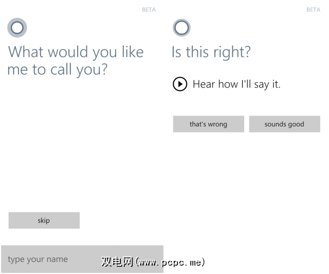 Cortana入门意味着少量的培训和配置。该工具会询问您您的名字,您必须通过文本输入该名字-然后您可以确认Cortana是否正确发音。