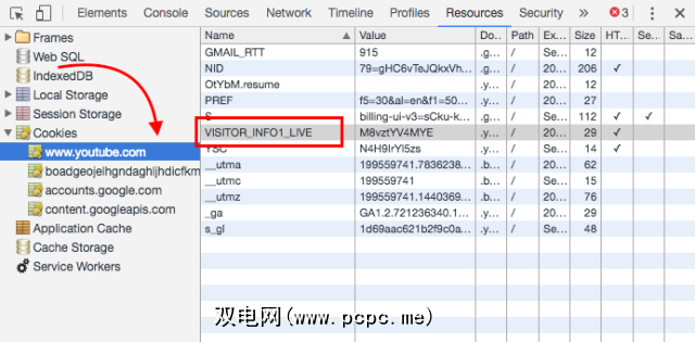 步骤4:。点击YouTube并删除Cookie:VISITOR_INFO1_LIVE。