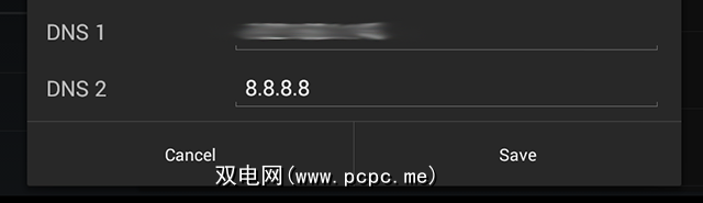 在屏幕底部,您可以设置两个DNS服务器。将您Pi的IP地址指定为DNS 1,并将8.8.8.8(Google的DNS服务,以防万一出问题)指定为DNS 2。
