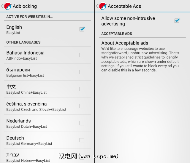 作为用户,您仍然可以选择在AdBlock浏览器中阻止所有这些可接受的广告。为此,请转到设置> Adblocking>可接受的广告,然后取消选中“允许一些非侵入性广告"框。