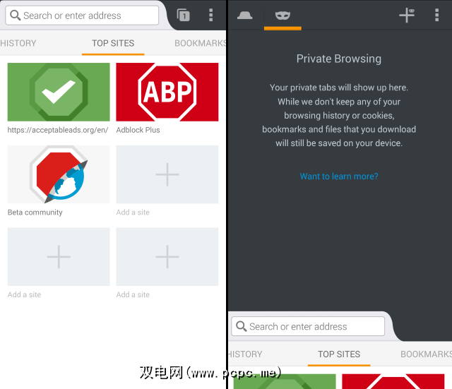 新的AdBlock浏览器基于Firefox for Android,这是目前最好的Android浏览器之一。因此,如果您使用的是Firefox,就会感到宾至如归。如果您没有,那就不用担心,AdBlock Browser的功能就像大多数浏览器一样,并具有您想要的所有功能,例如私人浏览,快速拨号,标签预览等等。