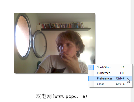 从此处,您可以启动和停止视频,切换全屏模式,访问首选项并关闭CamDesk。如果您喜欢使用每个选项,则每个选项都有其自己的热键。让我们来看看我们有哪些偏好设置。