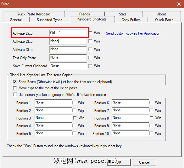 根据所使用的软件,您可以设置自己的键盘快捷方式来提取剪贴板历史记录。这应该随时为您准备就绪,因为您肯定会粘贴更多内容,而不是按暂停。例如,默认情况下,Ditto剪贴板管理器的快捷方式设置为 Ctrl +`(在 Tab 上方)。如果您不经常输入波浪号或重音符号(例如在学习新语言时),则可以进一步将其缩写为`。