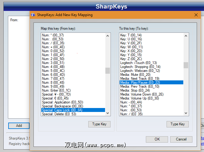 您可以简单地将一个键映射到另一个键,例如,使 Caps Lock 进入另一个 Shift 键。但是SharpKeys还支持 App:Calculator 和 Media:Play / Pause 之类的功能。查看正确的列表,找到最适合您的内容。完成后,点击确定,然后点击写入注册表。然后退出Windows,然后重新确认所做的更改。