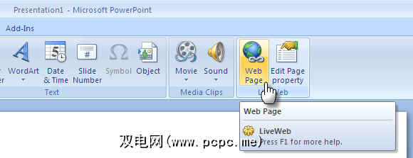 在一张幻灯片中插入“〜实时"网页是一个简单的三步过程,