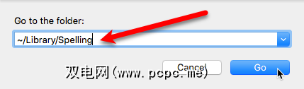 在转到文件夹框中键入〜/ Library / Spelling ,然后单击 Go 。