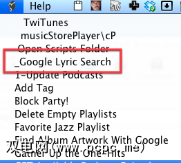 我用来在iTunes库中查找所选歌曲的歌词的方法是 Doug的AppleScripts中的 Google歌词搜索[不再可用] 。您可以在当前播放的歌曲上运行此脚本,它将在Internet上找到该歌曲的歌词。结果将显示在您的默认浏览器中。