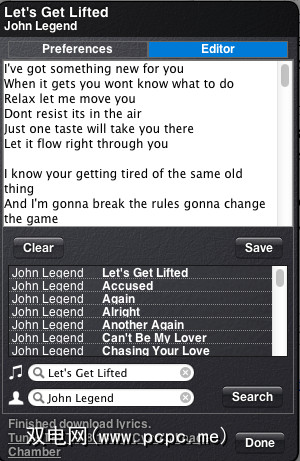 单击编辑器时,可以阅读下载的歌词和将它们保存到您的iTunes资料库。它们将嵌入到当前播放的歌曲中,从而避免了复制和粘贴的麻烦。