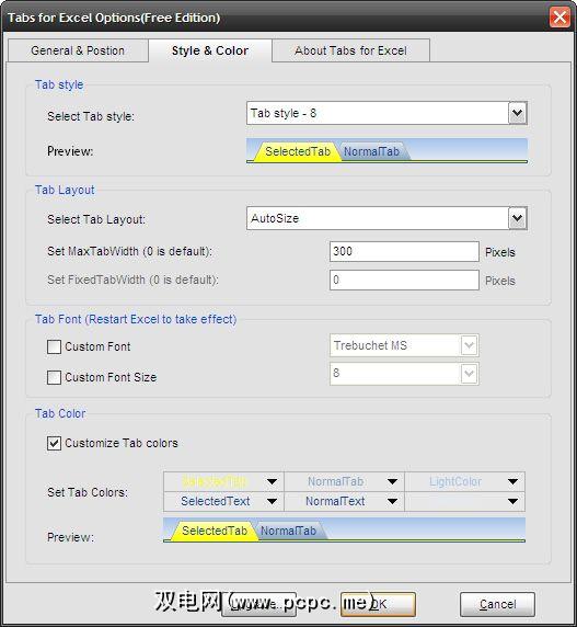 某些可用选项会更改选项卡的外观及其显示方式。例如,您可以摆弄工作区周围标签的位置(选择标签栏位置)。您可以通过从11种可用样式中选择一种来更改选项卡的样式和颜色。如果您想在选项卡上放一些颜色(只有 Excel 和 PowerPoint ),就可以疯狂地使用颜色。