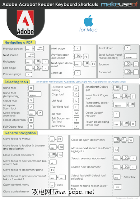 Acrobat中的快捷键列表非常大,我们精心尝试了每个快捷键,以找到最有用的键盘快捷键。很多。下面的备忘单将帮助您充分利用Mac上的Acrobat。