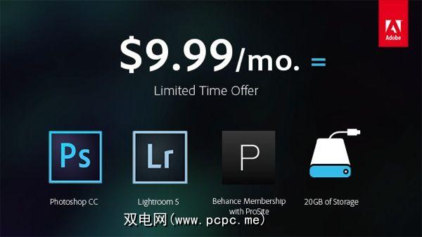 Adobe上周在拉斯维加斯举行的Photoshop World会议上宣布了特别的Creative Cloud订阅会员资格,月费为9.99美元。特别优惠适用于在2013年12月31日之前注册的现有合格Photoshop CS 3或更高版本的用户。