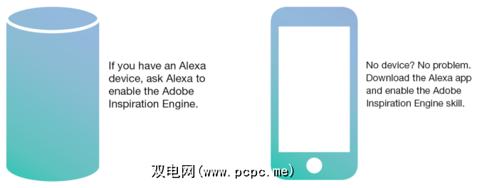 要从Amazon Alexa Skill商店启用Adobe Inspiration Engine,只需说:“ Alexa,启用Adobe Inspiration Engine。"然后,当您需要激发灵感来激发您的创造力,例如说“ Alexa,打开Adobe Inspiration Engine"。