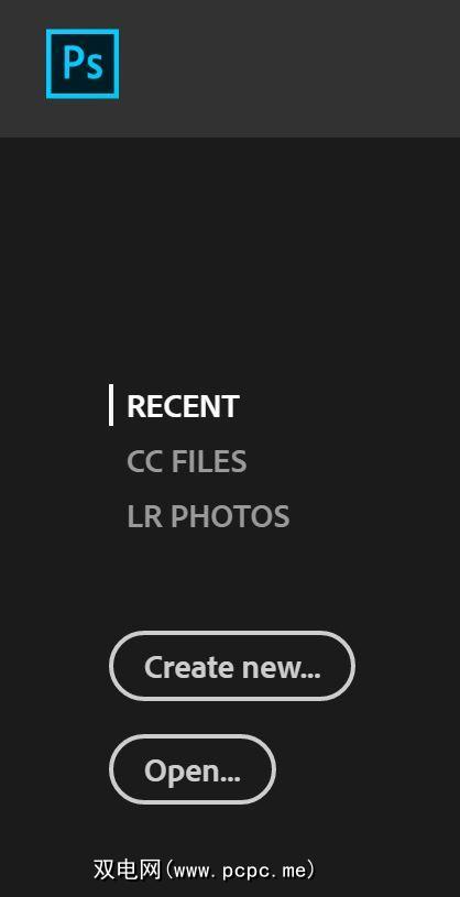 回到实际的Photoshop集成。首次打开Photoshop时,您会看到三个用于打开现有文件的选项:“最近",“ CC"文件和“ LR照片"。单击“ LR照片"以访问您的Lightroom文件。