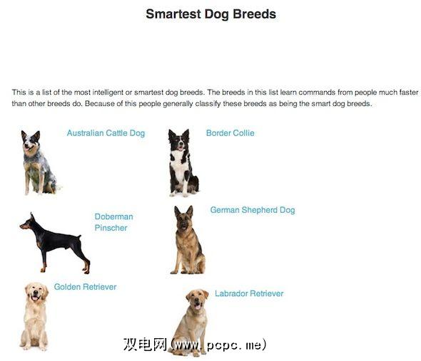 Just Dog Breeds使您可以使用非常特定的分类轻松浏览各种品种。主页上有21个类别与大小,性情,活动有关。您可以查看对儿童友善的狗的列表,或易于训练的狗的列表,等等。因为您可以看到所有符合特定类别的狗,因此可以真正了解有多少只狗适合您的个人生活方式,然后您可以通过详细介绍来缩小范围。