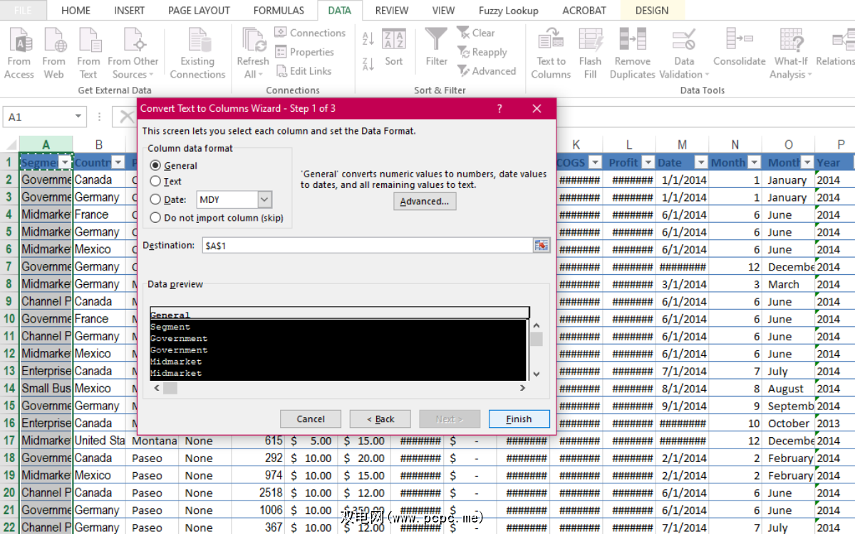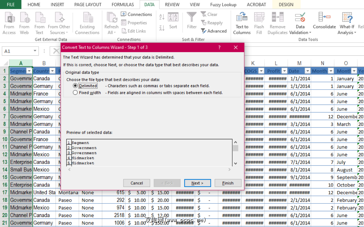 它允许您使用分隔宽度或分隔符(如逗号、连字符或空格)分隔列中的文本。因此,如果您的列中的条目具有其中任何一项,该功能将使您能够将其部分数据转移到新列。