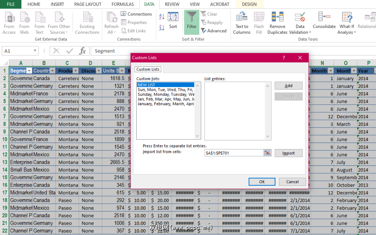 Excel 允许您在任何 Excel 电子表格或工作簿上使用自定义列表,方法是在 Windows 上单击“文件”选项卡>“选项” >“高级” >“编辑自定义列表”,在 Mac 上单击“ Excel” > “首选项” >“自定义列表”。