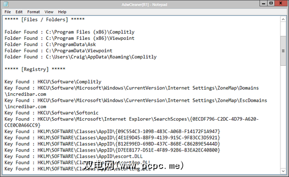 这将简要介绍AdwCleaner在系统上能够找到的内容。如您所见,我的系统有几个问题。 Complitly(也称为Claro Search)是一个巨大的烦恼,并且与许多安装程序捆绑在一起。观点和Ask.com工具栏都不是什么值得骄傲的。