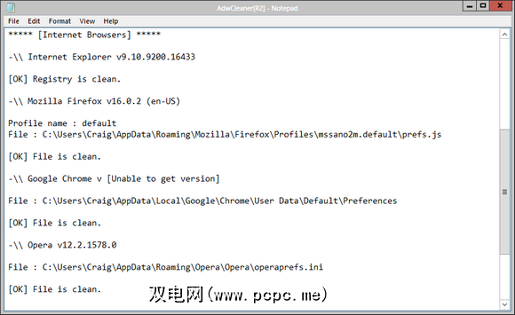 重新启动后,您应该会得到报告。如果要确保一切成功,请再次运行AdwCleaner。如您在我的日志中所看到的,它使我吱吱作响。