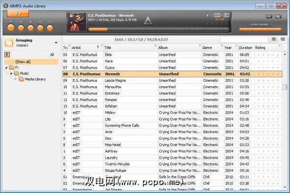 在AIMP3中,您可以打开一个与主播放器和播放列表隔离的单独窗口来管理所有您计算机上的音乐文件。这被恰当地命名为音频库。事实证明,音频库对我有用。