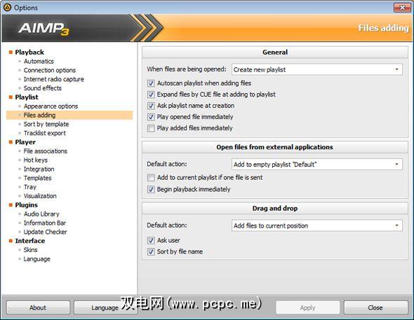 如今,正如大多数音乐播放器所期望的那样,AIMP3提供了广泛的自定义选项。一些是后端操作调整,例如在收听Internet广播时停止所需的超时。其他则是前端用户的调整,例如在播放列表中显示哪些列以及可视化效果如何。