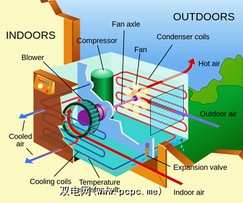 下面是空调的工作原理:AC机组从房间吸入温暖的空气;温暖的空气经过制冷剂,该制冷剂从空气中吸收热量;现在已冷却的空气被吹回室内,而吸收的热量则被排出到设备的后部。