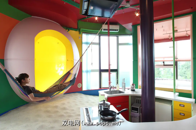 这套两居室公寓位于东京三鹰市的可逆命运阁楼。这个地方最多可容纳4人,是真正的现代艺术杰作。每个阁楼围绕中央厨房建造,起居区有多个无门吊舱伸出。这里的一切都类似于几何形状,并且肯定会改变您对完美公寓外观的认识。