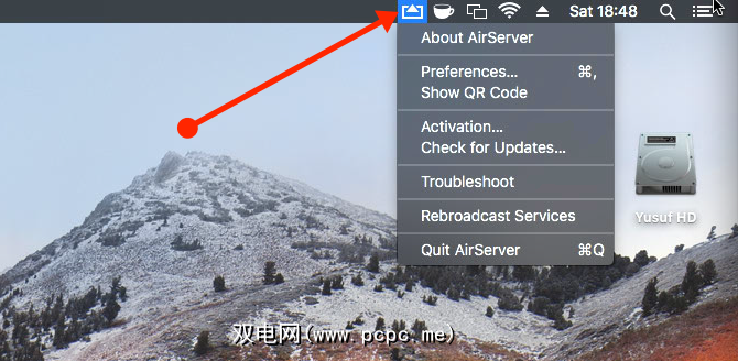 您可以在菜单栏中找到AirServer设置。该图标看起来几乎与AirPlay一样。值得浏览首选项菜单,因为有些设置可以调整以适合您的音频和视频设置。最后,请确保您要投放的AirServer机器和设备位于同一网络上,并且一切正常。