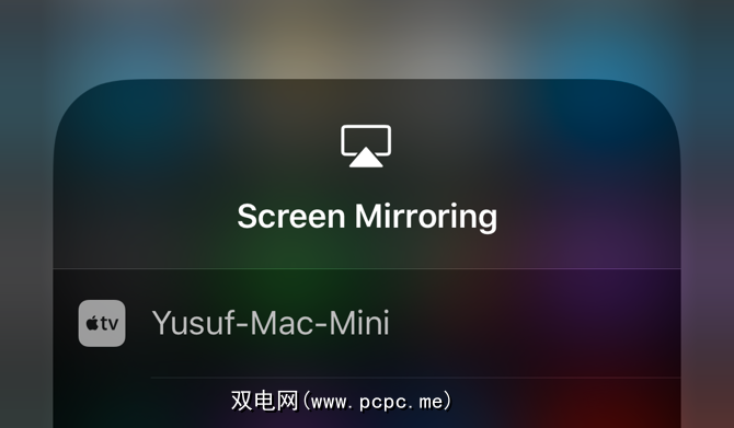 您的Mac mini将在iOS中显示带有AppleTV徽标。只需单击它即可连接,授权您是否看到安全提示,然后您的iOS设备将获得屏幕镜像。在macOS中,您可以从菜单栏中的AirPlay图标中选择Mac mini。