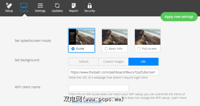 为了测试这一点,我使用TheDash.com构建了一个由新闻,实时访问者人数组成的基本显示来自我们的Google Analytics(分析)帐户,当地天气和Twitter搜索流。然后,我获取了全屏URL( https://www.thedash.com/dashboard/Bkvcx7Gq/fullscreen ),并将其粘贴到 Display 标签上的AirTame配置中。
