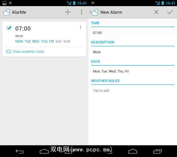 AlarMe是一种可识别天气的闹钟,可以根据您在不同条件下制定的规则,在不同的时间唤醒您。使用AlarMe,您可以将警报设置为在下雪时提前30分钟发出声音,反之则在条件良好时稍晚一点。该应用程序是免费的,仍处于测试阶段,因此可能存在错误,但概念很完善。