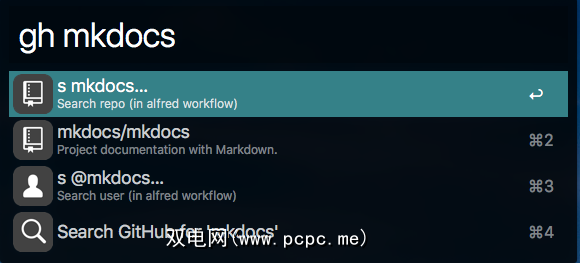 例如,要搜索Wikipedia,请在搜索词前添加 wiki 。在 YouTube 之前添加搜索视频。您不必记住这些关键字;定期使用它们,Alfred会自动建议它们。