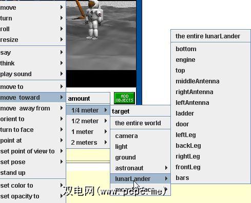 程序本身可以根据需要简单或复杂。如您在此处看到的那样,可以使用If / Else语句,While循环和当今大多数编程语言中的其他标准条件语句来创建复杂而功能强大的程序。在玩这个令人上瘾的学习程序的几分钟内,我创建了一个3D动画,其中宇航员靠近他的登月器并挥手说再见。摄像机近距离摇摄,然后当登月器在他不在机的情况下发射,他说:“嗯。"