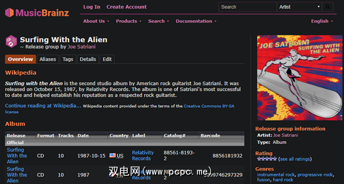 起初,这些信息可能会让人难以理解,但是使用MusicBrainz查找专辑封面非常简单。使用右上角的栏搜索艺术家或专辑名称,您会看到很多结果。选择您要查找的专辑,它可能会显示来自世界不同地区的多个版本。