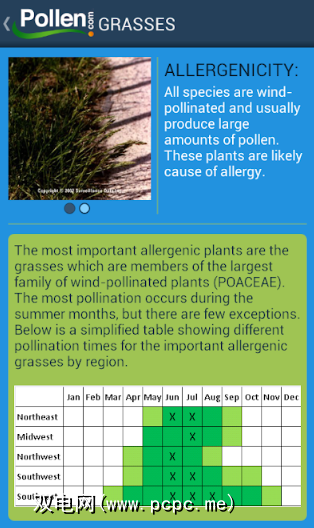 但是,再深入一点,该应用程序便开始发光。例如,所有最常见的植物过敏原都有专门的页面以及大量照片和信息。
