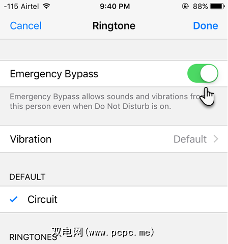 启用紧急旁路切换按钮。现在,尽管您的iPhone具有通用的“请勿打扰"设置,来自此联系人的所有呼叫仍将通过。