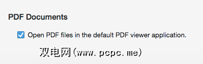- 向下滚动至基本标签上的页面底部,然后选中在默认的PDF查看器应用程序中打开PDF文件