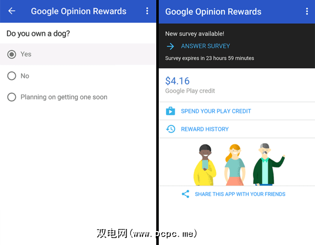 意见奖励是一个非常简单的应用。您进行一些调查,填写一些表格,分享您的意见-作为回报,您将获得Google Play积分,可用于购买应用程序,游戏,电影等。这是在看电视时赚一两美元的好方法。