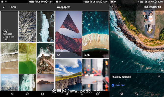 如果您喜欢Pixel手机上的那些卫星墙纸,那么您会喜欢Google的“墙纸"应用。该应用程序带来了一系列从艺术到纹理的壁纸。