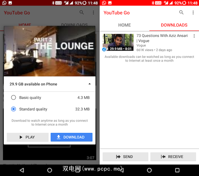 YouTube Go允许用户以压缩格式将视频下载到其设备中。另外,安装了YouTube Go应用的两个用户可以在其设备之间交换视频。