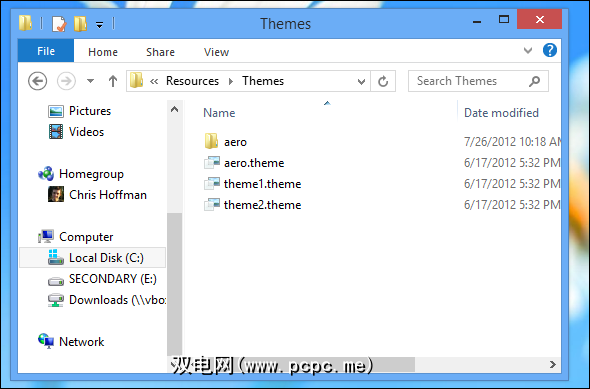 您现在可以下载并安装具有.theme文件扩展名的第三方主题。要安装它们,请将它们放置在计算机上的C:\ Windows \ Resources \ Themes目录中。它们将出现在标准主题窗口中-右键单击桌面,然后选择个性化以查看已安装的主题并在它们之间进行切换。它们将显示在“已安装主题"部分中。您还可以双击主题的.theme文件以将其安装后应用。