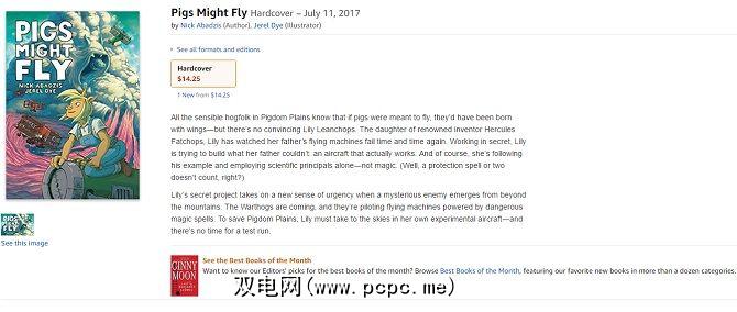 让我们来看看一本图画小说称为猪可能飞的真实示例。在美国可以很容易地进行预订,但是在英国,它只作为平装书来宣传-除非我在Twitter上看到了精美的精装书,但我知道我想要这样做。