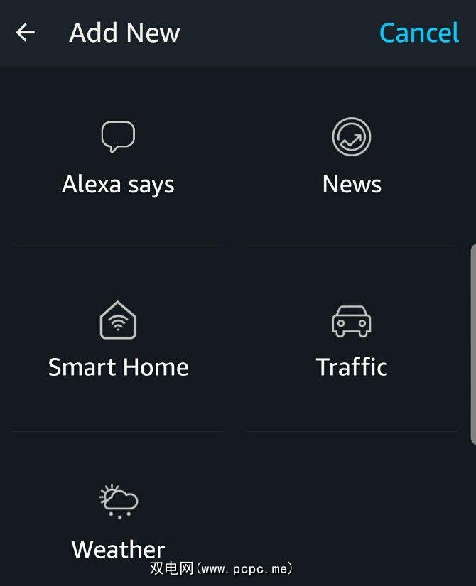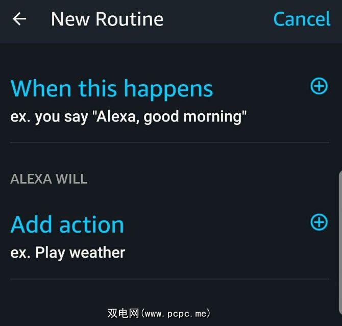 设置完这些细节之后,您可以选择所需的操作。点击添加操作选项。除了提供交通和天气信息之外,您还可以让Alexa激活智能家居设备。