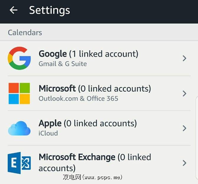 Alexa支持Google,Apple和Microsoft日历。点击链接选项,然后输入您的帐户信息。