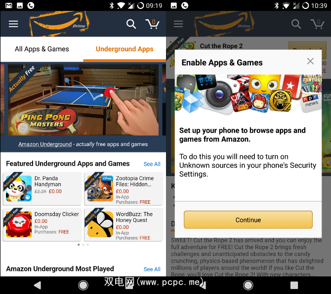 对于应用程序和游戏,您需要Amazon Underground应用程序。由于它是第三方应用商店,因此您不会在Google Play中找到它。这意味着您必须降低设备安装的安全性-大多数用户在安装设备后会忘记撤消此更改。