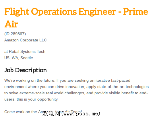 身为亚马逊无人机试飞员听起来很有趣,但是在线零售商只是在寻找最好的。不过,如果您有5年的飞行测试经验并获得工程学学位,那么这可能只是您的工作。