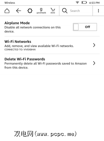 即使您的Kindle一次充电可能可持续使用数周,但当您要开始阅读一本新书时,它仍然会耗尽电池电量,这仍然令人讨厌。通过一些调整,您可以进一步延长电池寿命。第一种是在不下载或浏览新书时打开飞行模式。最快的方法是显示顶部菜单,然后单击齿轮图标。