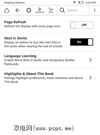 此外,您还可以从阅读中关闭 Page Refresh 设置中的选项。禁用此设置实际上将阻止Kindle在每次翻页时手动刷新其电子纸屏幕。