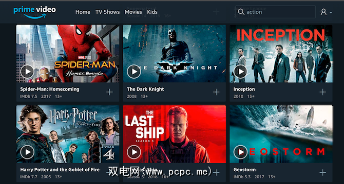 第一个方法可以在Prime Video本身上完成。虽然该服务的搜索栏没有显示任何过滤器,但您可以查找类别。例如,您可以键入“动作",Prime Video将拉动动作电影或节目。