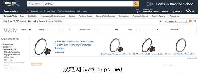 搜索助手的过滤器仅占亚马逊搜索结果上方整洁的空间页。您可以通过以下四种方法对结果进行排序,找到要购买的确切商品-只需移动滑块,即可在页面上动态调整结果。
